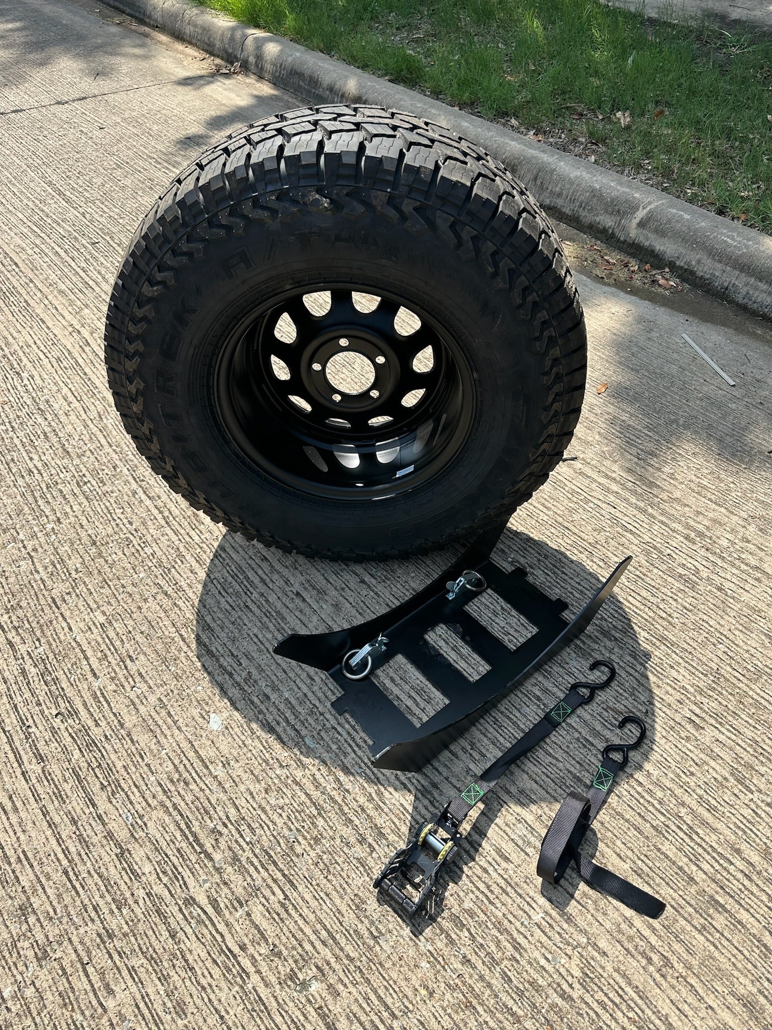 Wanna add a spare tire to your rig? No problem? Our kit includes: