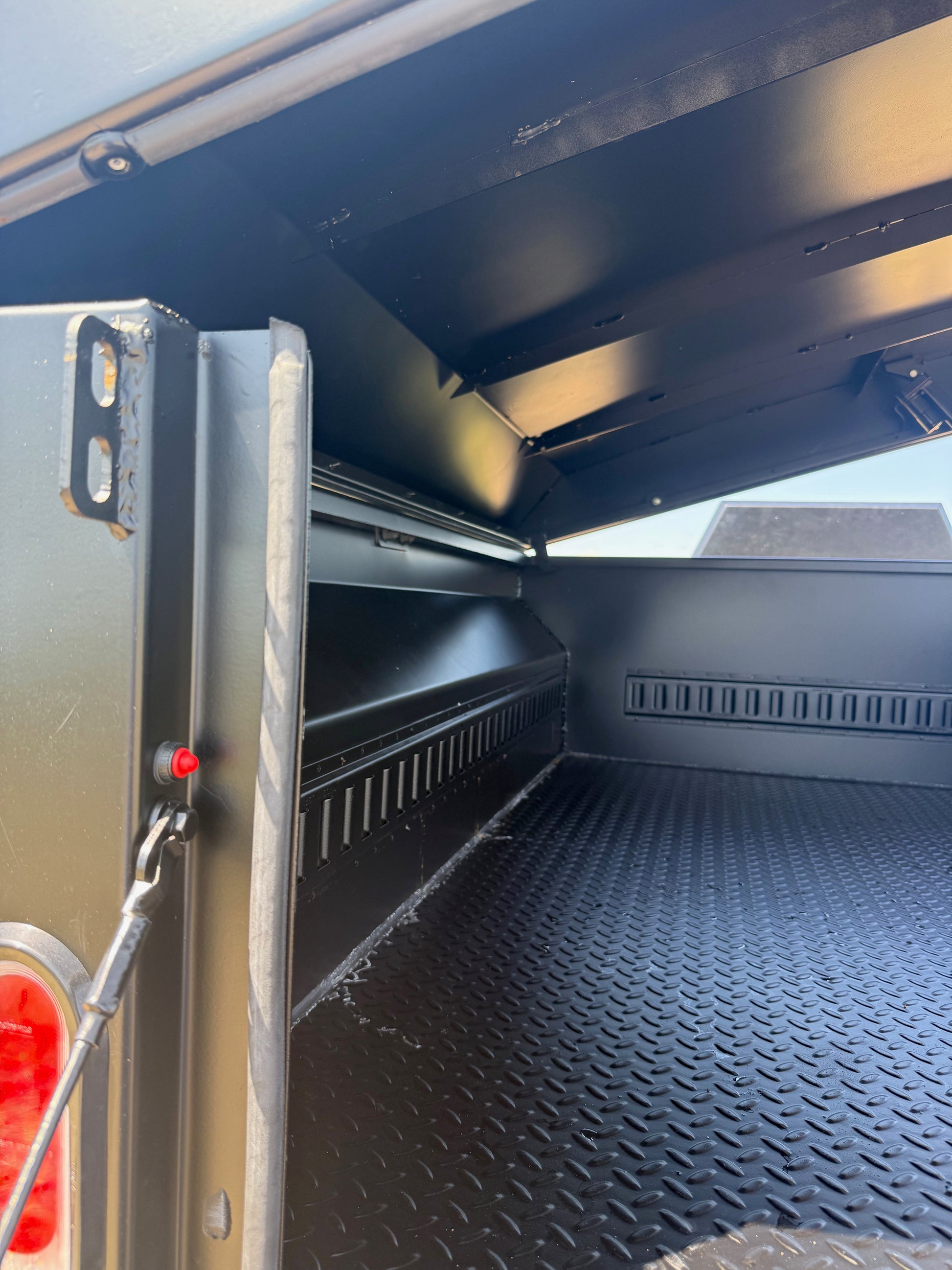 - Tailgate opens flush with floor of cargo area. Tailgate allows easy access to cargo area if rack mounted RTT is open and/or trailer lid is closed.