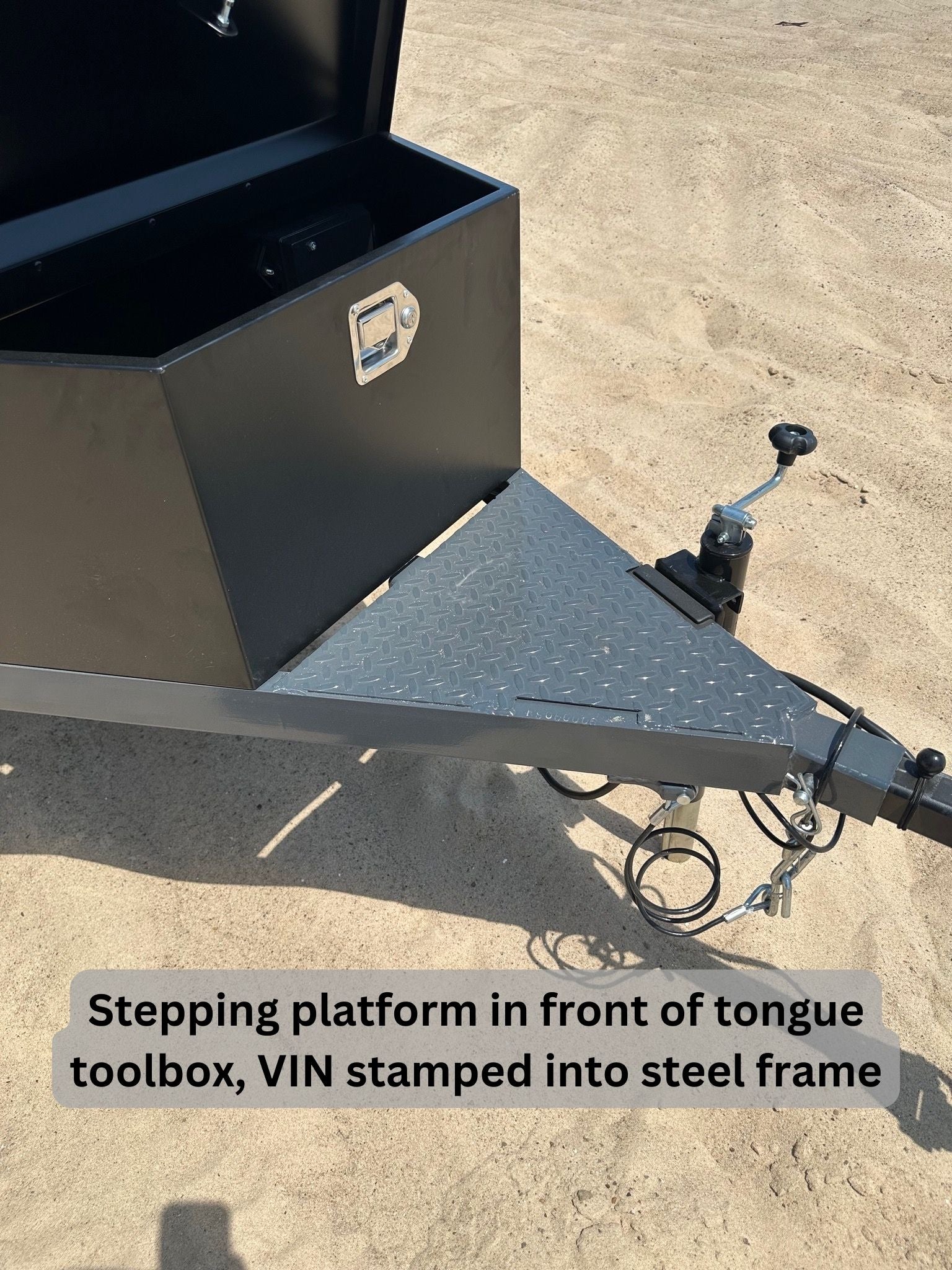- Step-plate in front of toolbox on tongue