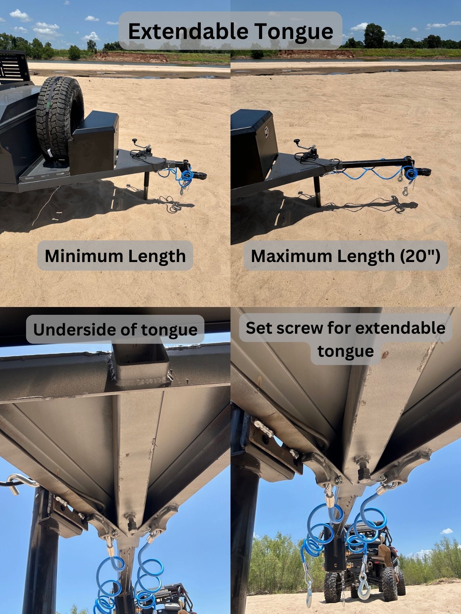 - Extendable Front Tongue: Extend front tongue up to 20".