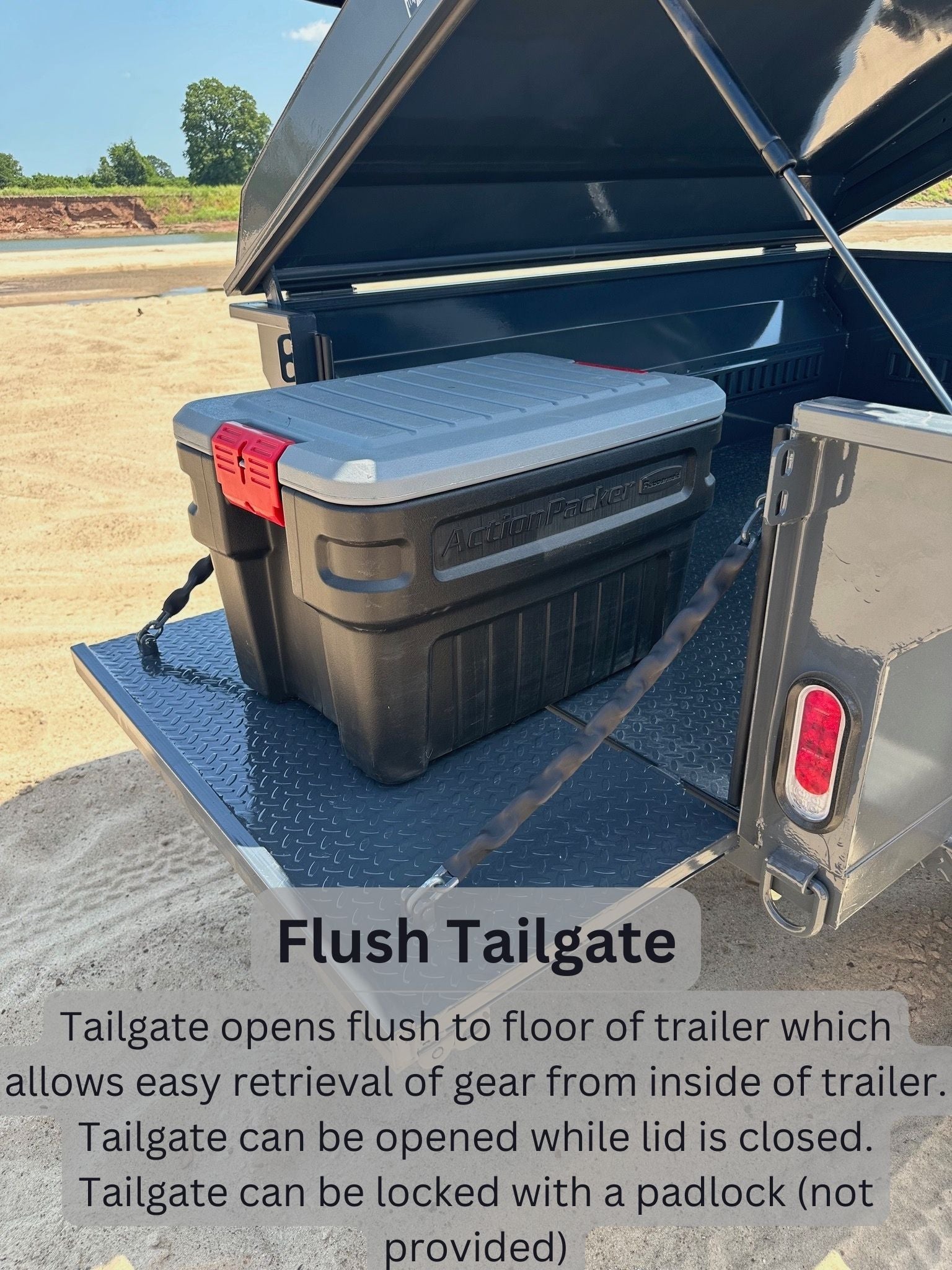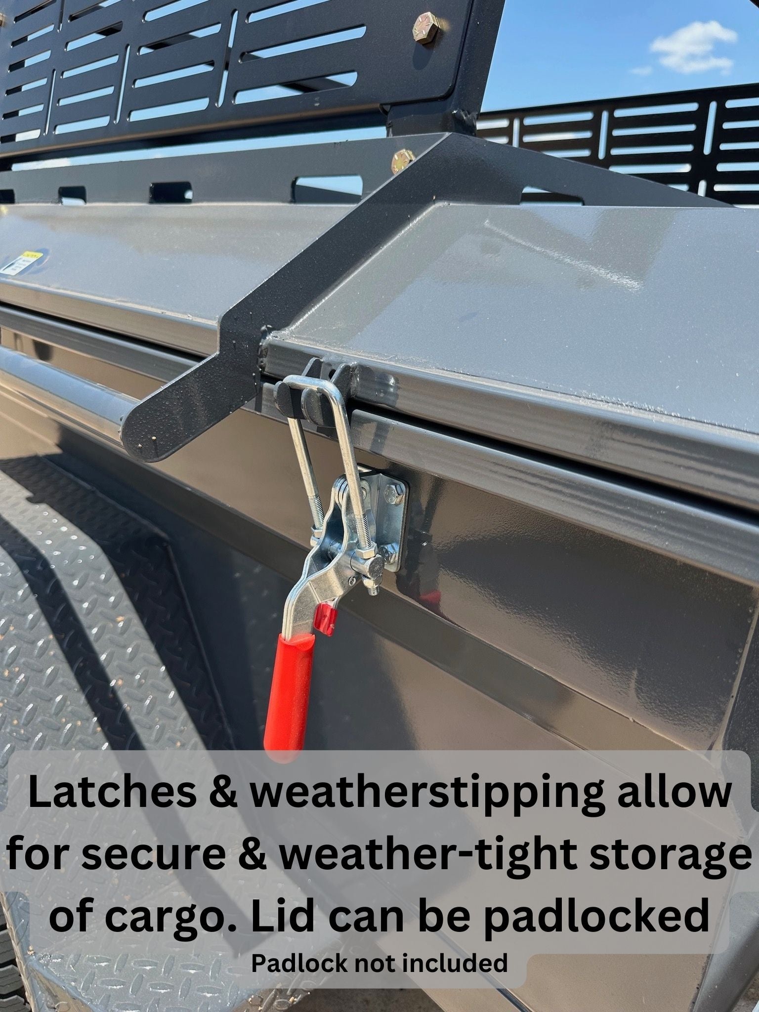 - Lid and tailgate can be locked with a padlock (not provided)